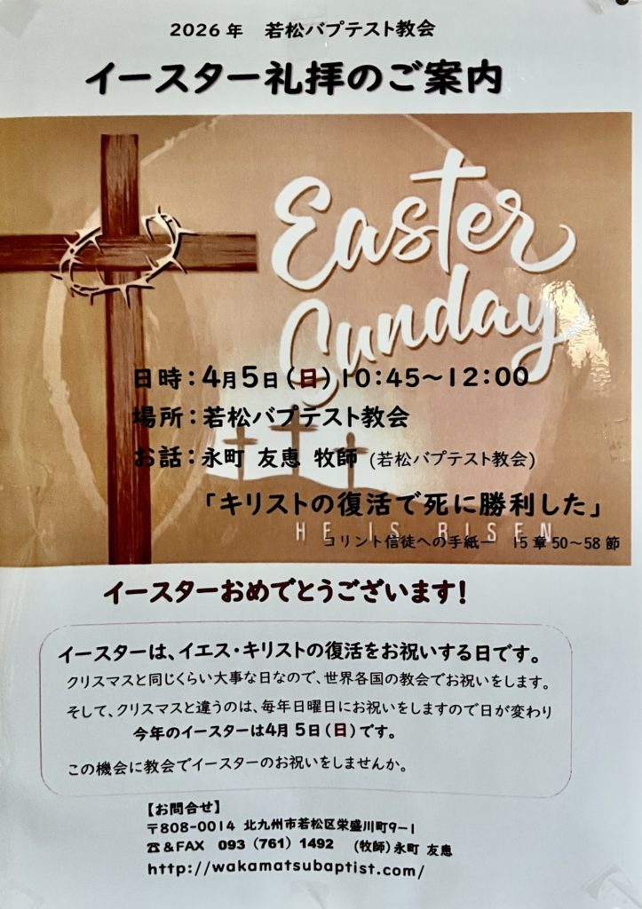若松バプテスト教会の最新情報はフェイスブックのページでご覧になれます。